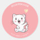 Niedlich Happy White Cat mit Heart Balloon Homemad Runder Aufkleber