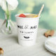 Hochzeitsbecher mit Frau und Frau in einer Kalligraphie-Schrift zusammen mit den verflochtenen Herzen geschrieben, perfekt für eine heiße Schokoladenhochzeit-Bar. Personalisieren Sie Ihren neuen gemeinsamen Nachnamen und Ihr Hochzeitsdatum und Ihren Hochzeitshashtag, damit Ihre Gäste ihren hübschen Drink genießen können!