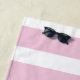 "Hallo Sommer" Strandtuch in Handschrift und Kalligraphie Stil Schriftart mit niedlichen Wassermelonen Scheiben. Das Handtuch am Strand ist rosa und weiße Streifen. Girly Design. Digitale Illustration von Kristine Lee. Weitere Informationen finden Sie unter www.kristineleedesigns.com