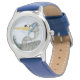 Kinderuhr aus Edelstahl mit blauem Lederarmband