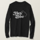 Dieses Design ist ein niedliches, langärmeliges Hemd für Halloween und bietet eine Geistergrafik mit weißer Hey Boo Typografie in Retro-Stilschriften auf einem schwarzen Hemd. Auch andere Shirt- und Farbstile sind verfügbar.