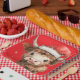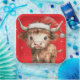 Niedliche Highland Kuh in Weihnachtsmannmütze Red Background. Feierliche Köstlichkeit für Ihren Urlaubstisch, mit diesem lustigen Design mit einer süßen Hochlandkuh in seiner Weihnachtsmannmütze.