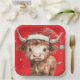 Niedlich. Highland Cow in Weihnachtsmannmütze Red Pappteller