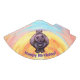 Animal Parade Hippopotamus Party Hat unsere niedliche Hippo von vorne auf einem strukturierten gelben, orangen, blauen und rosa Hintergrund mit den Worten Happy Birthday unten am Ende. Feiern Sie den Geburtstag Ihres Kindes im niedlichen Wildtierstil mit unseren Hippo-koordinierten Party-Vorräten, Geschenken, Dekorationen, Gastgeschenke und vielem mehr. Dieses bezaubernde Hippo wird sicher lächeln. Party an!