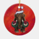 Die Tierparade Mastodon namens Thelma ist für Weihnachten mit einer Weihnachtsmannmütze und heiligen Kränen vor einem geschliffenen Weihnachtsrot ausgelegt. Sie wird in dieser Feriensaison sicher lächeln! Deck deine Hallen mit farblich koordinierten festlichen Tiere Parade kommen und gehen. Ho, ho, ho!