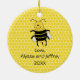 Dieses lustige Weihnachtsschmuck in individueller Keramik hat ein Bild von einer niedlichen Cartoon Honigbiene auf einem Wabenhintergrund. — Das Ornament sagt Happy Honey Days, ein Wortspiel, anstelle von Happy Holidays. Auf der Rückseite ist Platz für Ihre Namen und das Jahr oder andere Nachrichten. Sie können den Beispieltext in Ihren eigenen Text ändern, um ihn zu personalisieren. Sie können auch den Stil oder die Größe des Schriftartes ändern, um ihn anzupassen. Möglicherweise müssen Sie die Größe oder die Position der Wörter anpassen, um sie anzupassen. Klicken Sie auf die Schaltfläche Anpassen oder Personalisieren. — Nutzen Sie diese für Imker, Imkerinnen oder Bienenliebhaber. Oder nutzen Sie es für Ihr Bienenzuchtgeschäft oder Ihr Hobby. Macht ein perfektes Weihnachtsgeschenk während der Ferien. — Sehen Sie mehr Bienen auf Alinas Stift.
