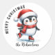Erstellen Sie einzigartige personalisierte Weihnachtsaufkleber für Umschlag Aufkleber, Favoriten oder Geschenkpackungen mit einem Design, das "Frohe Weihnachten" und einen niedlichen Pinguin in roter Weihnachtsmannmütze, Schal und Figur-Skate. Die Vorlage macht es einfach, Ihren Familiennamen in lässigen Skript-Schriftart einzugeben.