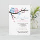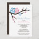 Zeitgenössisches Paar Brautdusche Einladung. Unser stilvolles, trendiges und modernes Eulenpaar in Liebe Polterabend Einladung ist das Set auf einem 5 x 7 knusprigen, weißen Hintergrund mit einem braunen Rücken.Niedlich pink & blau Eule Ehepaar sitzend auf einem braunen Baum Zweig pink & blau daisy Blume.