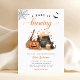 Fügen Sie Ihrem Herbstfest eine magische Touch mit dieser "A Baby is Brewing" Halloween Baby Shower Invitation hinzu - ideal, um während der herrlichsten Jahreszeit einen Kürbis zu sich zu nehmen! Dieses Design mit skurrilen Aquarellbildern aus einem Kessel mit Blasen, einer lächelnden Jack-o’-Laterne, Hexenbesen, Tränenflaschen und einer merkwürdigen, schwarzen Katze, die allesamt mit Fledermäusen und einem Spinnennetz besticht, verbindet Halloween-Spaß mit Babydusche-Charme. Die sanften Orangentöne und die neutralen Farbtöne machen es zu einem spielerischen und modernen Hotel - ideal für eine junge Oktobermama. Einfach zu personalisieren für eine zauberhafte Feier!
