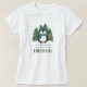 Dieses lustige, humorvolle Weihnachtsferien-Shirt ist mit einem handgezeichneten Pinguin ausgestattet, der einen Hut und Schal in aquamarinem Blau trägt. Er ist vor einigen Weihnachtsbäumen stehend und hält einen Lebkuchengebäck. Text (ein Wortspiel) lautet: "Es ist Pinguin, viel wie Weihnachten auszusehen."