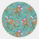 Wenn Sie australische Kängurus Liebe, dann werden Sie diese niedlichen und lustigen Aufkleber Liebe! Dieses Aquarellmuster zeichnet sich durch Kängurus mit Weihnachtshüten aus, umgeben von Bonbons auf aquamarinem Hintergrund. Es ist perfekt für alle, die Kängurus Lieben.
