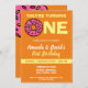 Niedlich Kawaii Donut Orange Joint Twin 1. Geburts Einladung