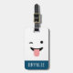 Niedliches Kawaii Gesicht, Gepäckanhänger. Enthält die Registerkarte blauer Farbblock für Namen auf der Vorderseite und Vorlagenzeilen für Namen und Adresse auf der Rückseite mit der Koordination des blauen Hintergrunds.