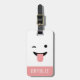 Niedliches Kawaii Gesicht, Gepäckanhänger. Enthält die Registerkarte rosa Farbblock für den Namen auf der Vorderseite und Vorlagenzeilen für Namen und Adresse auf der Rückseite mit der Koordination von rosa Farbhintergrund.