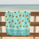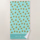 Adorable Avocado gemustertes Strandtuch mit einem Allover-Muster von Lächeln und Wein Kawaii Avocados in einem Cartoon Stil, auf einem hellen sommerlichen türkisfarbenen Hintergrund. Ein niedliches und trendiges Design, das sich perfekt für Avocado-Liebhaber oder Kawaii-Fans eignet, um dieses schicke Strandtuch mit einem Namen am Boden zu personalisieren.