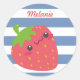 Niedlich Kawaii Strawberry Streifen Personalisiert Runder Aufkleber