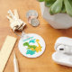 Ein niedlicher personalisierter Cartoon-Dinosaurier-Design mit prähistorischen Dinosauriern aus der Jurassik-Zeit in hellen Farben von blau gelb und grün. Mit einem T-Rex, Tyrannosaurus Rex, Triceratops und einem Brontosaurus . Ein niedliches Design für Jungen oder Mädchen. Fügen Sie den Namen des Kindes hinzu, um diesen geschlechtsneutralen Schlüsselanhänger zu einem besonderen Geschenk zu machen.