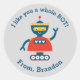 Ein niedlicher Robotervalentiner Tagesaufkleber für Kinder. Es enthält einen skurrilen Roboter mit den Worten: "Ich mag dich als ganzen Bot". Niedlicher Akzent für Kinder Klassenzimmer valentine Leckerei Taschen oder Valentinstag Karten für Freunde. Personalisieren Sie es mit jedem Gruß und Namen Ihrer Wahl. Entworfen für Sie von BlackBerry Boulevard.