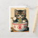 Niedlich Kitten Eating Ramen Woodblock Print Postkarte
