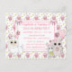 Sweet handgezeichnete Cartoon Kätzchen, Maus und Lama rosa Kuchen und verbeugt Mädchen Geburtstagsfeier Einladungen.