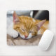 Niedliches orangefarbenes und weißes Kätzchen auf dem Sofa.