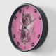 Niedlich Kitten Pink Wall Clock mit schwarzer Katz Uhr