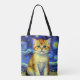 Tote Bag mit einem niedlichen Van Gogh Kätzchen! Diese kleine, orange-weiße Pose mit Starry Night. Ein puristisches Geschenk für Katzenliebhaber und holländische Kunstsammler!