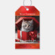 Ein niedlicher Geschenktag mit einem Kätzchen in festlicher roter Geschenkboxen. Schöne zum Geburtstag Danke, Weihnachten oder einfach nur, weil ...