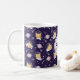 Eine Tasse mit einem hübschen Muster, in der Kätzchenastronauten im Weltraum schwimmen. Spaß und skurril.
