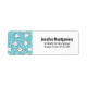Adressetiketten mit niedlichem Katzenmuster, Set auf blauem Hintergrund und dekoriert mit Regenbogen, Pfotenabzügen und vielem mehr.