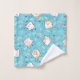 Handtuch Set mit niedlichem Katzenmuster, Set auf blauem Hintergrund, mit Regenbogen, Pfotenabzügen und vielem mehr.