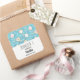 Seife, Kerzen (oder andere) Business-Produkt-Aufkleber mit einem niedlichen Katzenmuster, Set auf blauem Hintergrund und dekoriert mit Regenbogen und Pfotenabzügen und vielem mehr.