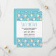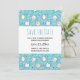 Save the Date Karte mit niedlichem Katzenmuster, Set auf blauem Hintergrund und dekoriert mit Regenbogen, Pfotenabzügen und vielem mehr.