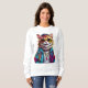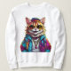 Sweatshirt mit einer niedlich lächelnden Katze. Farbiges Design.
