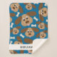 Diese blaue Babydecke ist mit einer Collage eines lächelnden Hundes mit großen Ohren und Hundeknochen auf dunkelblauem Hintergrund ausgestattet. Personalisieren Sie diese schöne Decke mit dem Namen Ihres Kindes.