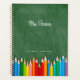 Ein moderner personalisierter Planer für Lehrer mit grünem Chalkboard-Hintergrund mit farbenfrohen Stiften. Name des Lehrers in Skript. Benutzerdefinierter Text ganz unten in einem Serif-Schriftart.