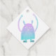 Niedliches kleines blaues Monster mit einem Schwert und einer Fledermaus, die um Illustration herum spielt