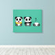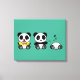 Drei hübsche kleine Pandas nebeneinander. Ein glücklicher Panda trägt ein T-Shirt mit "I heart panda" auf ihm geschrieben. Ein anderer bietet einen grünen Bambusstock an, um einen dritten Panda zu sehen, der eingeschlafen ist.