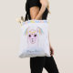 Niedliche Lama Tote Tasche. Schönes rosa Lamm mit farbenfrohen Bändern über den Wolken. Der Name Llama hat mehrere Bedeutungen: Rufen, Lama, Weisheit, Flamme (auch heilige), etc. und rückwärts ist... Alles. Hoch auf den Bergen, wo es Lamas gibt es keine Dramen!