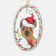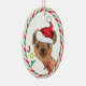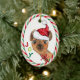 An der Vorderseite dieses niedlichen Weihnachtsschmucks trägt ein kleines braunes Baby Lama eine rot-weiße Weihnachtsmannmütze und einen roten Bogen. Auf der einen Seite steht der bunte Text, der "JOY" sagt. Ein roter und grüner Kantenstreifen rundet das Design ab. Die Rückseite des Ornaments hat den gleichen Rahmen, und vier Textfelder in rot und grün für Sie anpassen.