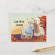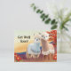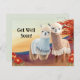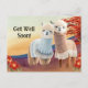 Holen Sie sich bald eine Postkarte mit zwei niedlichen Lamas in einer Fantasiewelt. Gut, gute Wünsche für ein kranzes Kind zu senden.