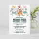 Diese niedliche Einladung eignet sich perfekt für die Marionettentheater-Geburtstagspartys mit der Darstellung von Marionetten-Marionetten-Marionetten-Marionetten-Marionetten-Marionetten-Marionetten-Puppen aus dem süße Tier. vorne eine Ziege, Hund und Vogelmarionette und hinten eine Marionette-Katze.