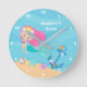 Niedlich Mermaid Girl Beach House Personalisierte Runde Wanduhr