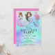 Girls Geburtstagsjubiläum für jedes Alter mit einem mädchenhaften Glitzer-Design. Kindergeburtsfeier mit braunhaarigen Meerjungfrauen und Aquarellgestaltung mit Imitaten Glitzer im Hintergrund. Ändern Sie die rosa hintere Farbe, indem Sie auf die Schaltfläche klicken, um das Design zu bearbeiten.