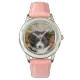 Kinderuhr aus Edelstahl mit rosa Lederarmband