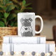 Ein bezauberndes Design eines Schnauzers über einem Hintergrund von Pfotendrucken. Eine perfekte Tasse für jeden Schnauzer-Liebhaber.