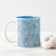 Niedlich Modernes Muster Natur Blumenblau Vintage Zwei-Tonen-Kaffee-Tasse | Skandinavische Waldlandschaft Pflanze, Blume, Kräutern, Baumstumps, Pilze. Hintergrund der Waldwiese Cartoon botanischer Verpackungspapierentwurf