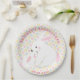 NewParkLane - Papier Teller, mit einem Mutter- und Babybunny, vor einem rosa, schluckig grün und Senfgelb floralen Hintergrund. Niedliches Design (für eine Babydusche) zum Geburtstag eines kleinen Mädchens. Einfache Anpassung in Zazzle mit Ihrem Namen, Datum oder anderen Texten für ein personalisiertes Design. Alle Textstile, Farben, Größen können an Ihre Bedürfnisse angepasst werden. Karo diese Kollektion für passende Artikel wie Servietten und Papiertassen! Haben Sie spezielle persönliche Designwünsche? Kontaktieren Sie mich bitte!