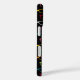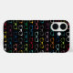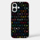 Ein niedlicher und nerdiger iPhone 16 Gehäuse mit einem farbenfrohen Hipster Brillenmuster auf schwarzem Hintergrund. Ideal für Buchwürmer, Geeks, Optiker und mehr!