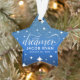 Ein Stern ist geboren! Feiern Sie dieses neue Freudenbündel im ersten Jahr mit diesem Weihnachtsschmuck, das die Worte "kleiner Träumer" enthält, Set in eleganter fließender Schrift auf einem sich wiederholenden Sternenmuster, nah und fern, blinkt gegen einen dunkelblauen Himmelshintergrund, der in Schwarz übergeht. Umkehrung zeigt identisches Design. Personalisieren Sie die Angaben mit dem Namen des Babys und dem Geburtsdatum. Design © W.H. Sim, Alle Rechte vorbehalten. Weitere Informationen unter zazzle.com/expressionsoccasions